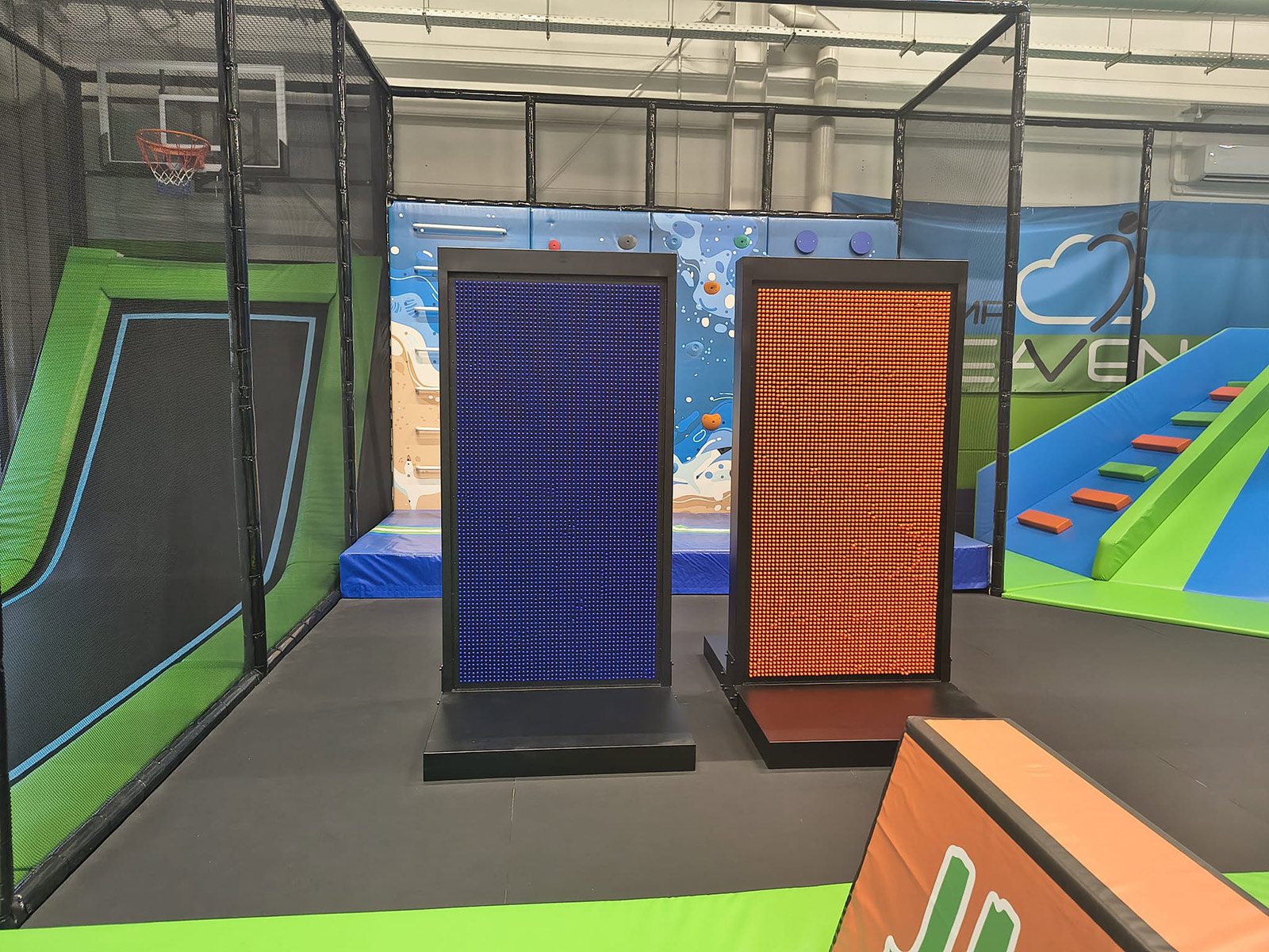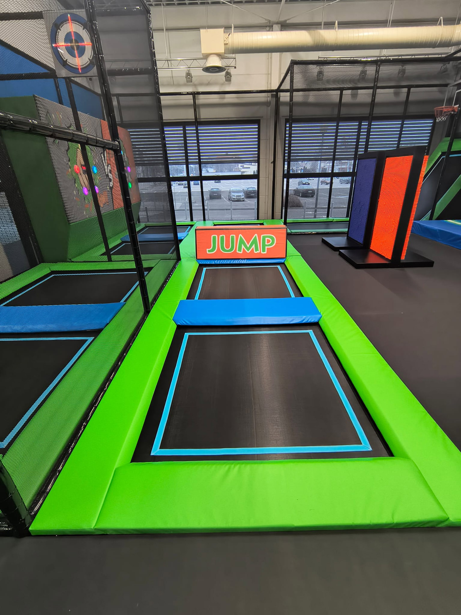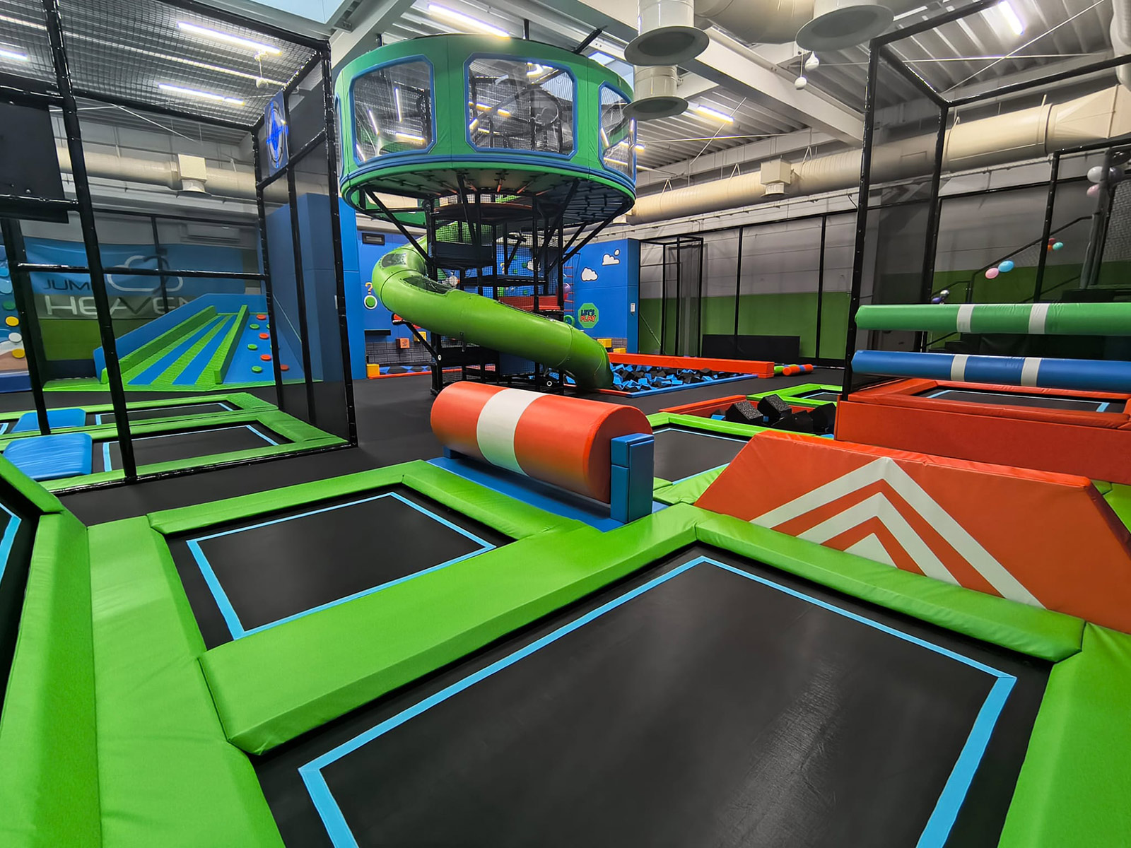 Najważniejsze cechy: - Trampoliny konwencjonalne - Basen z gąbkami - Ścianka wspinaczkowa - Jaskrawa kolorystyka - Prawie 50 osób na godzinę