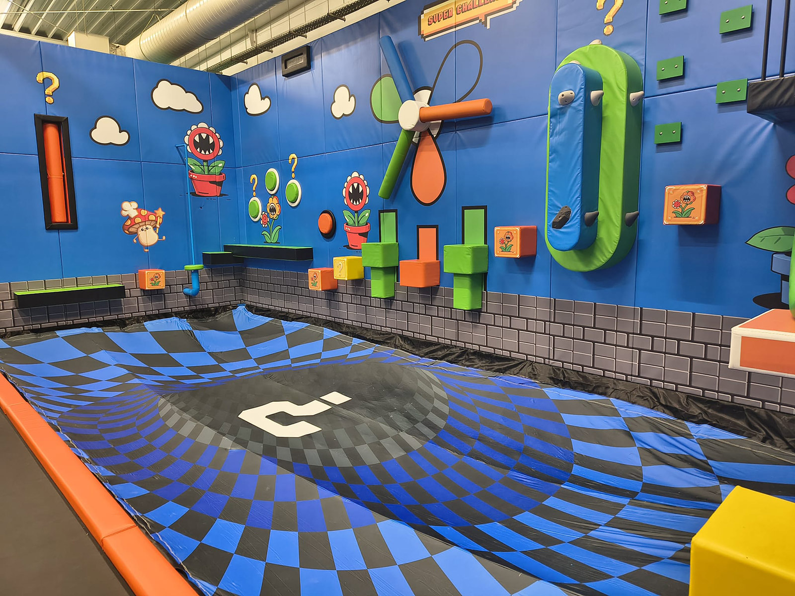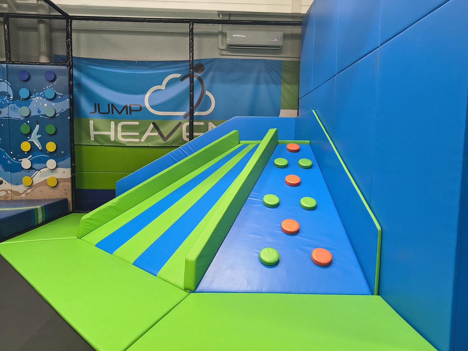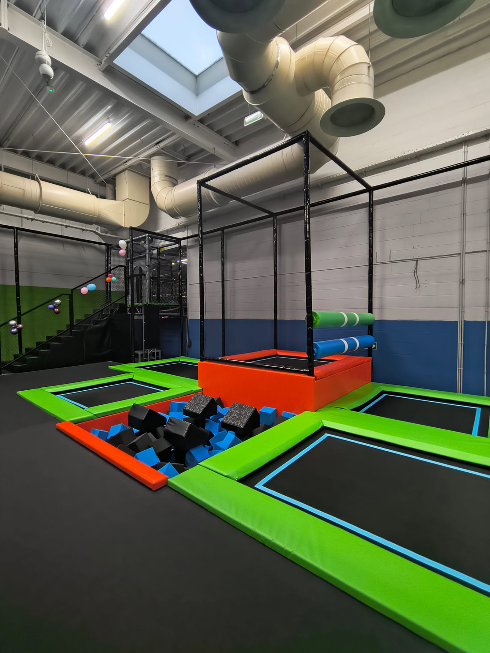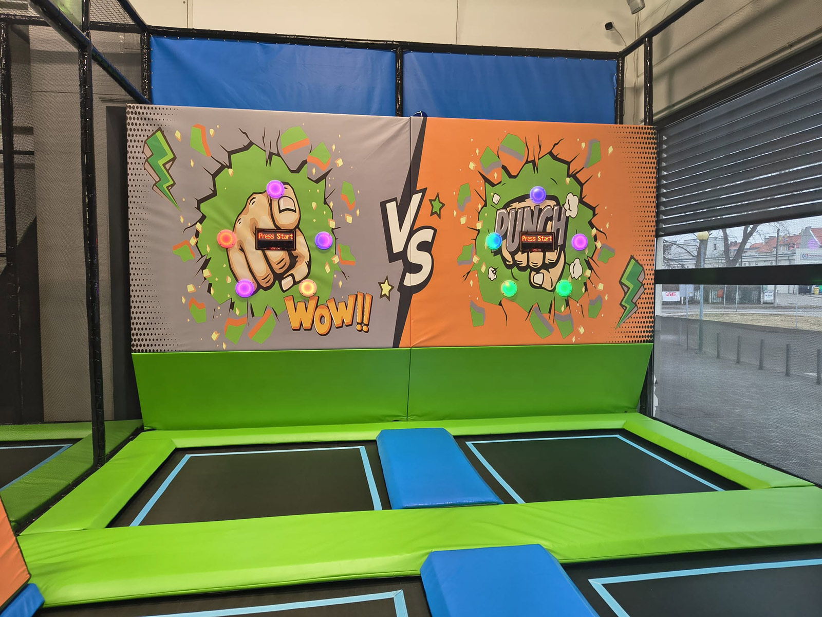 Najważniejsze cechy: - Trampoliny konwencjonalne - Basen z gąbkami - Ścianka wspinaczkowa - Jaskrawa kolorystyka - Prawie 50 osób na godzinę